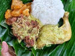 Nasi kuning yang berwarna kuning cerah ini disajikan dengan hidangan pelengkap seperti ayam goreng, telur, sambal, dan kerupuk. Rasanya yang lezat membuatnya cocok untuk sarapan atau makan malam. Pasti ViralĀ